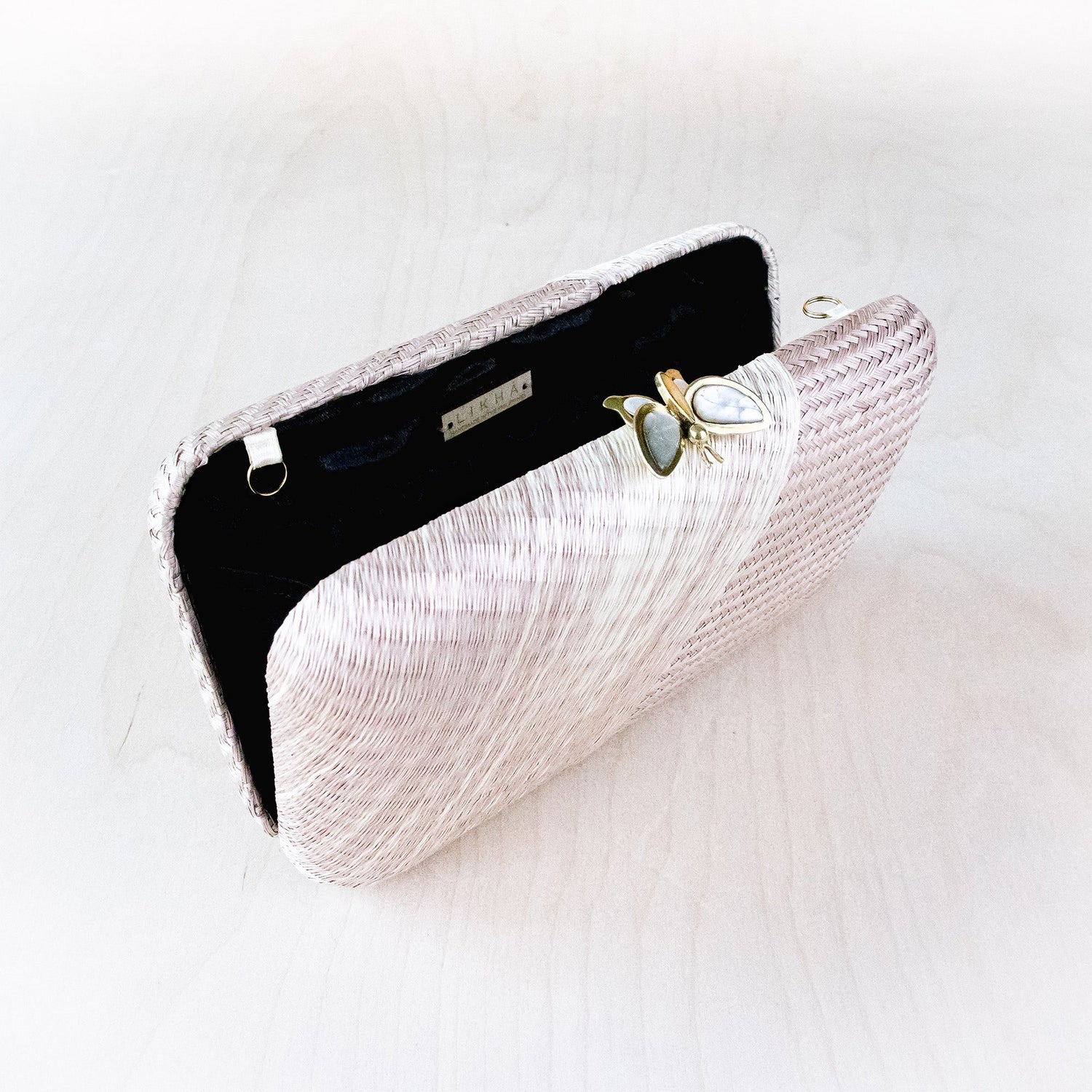 Dusty Rose Kimono Clutch Purse - Handwoven Straw Bag | LIKHÂ