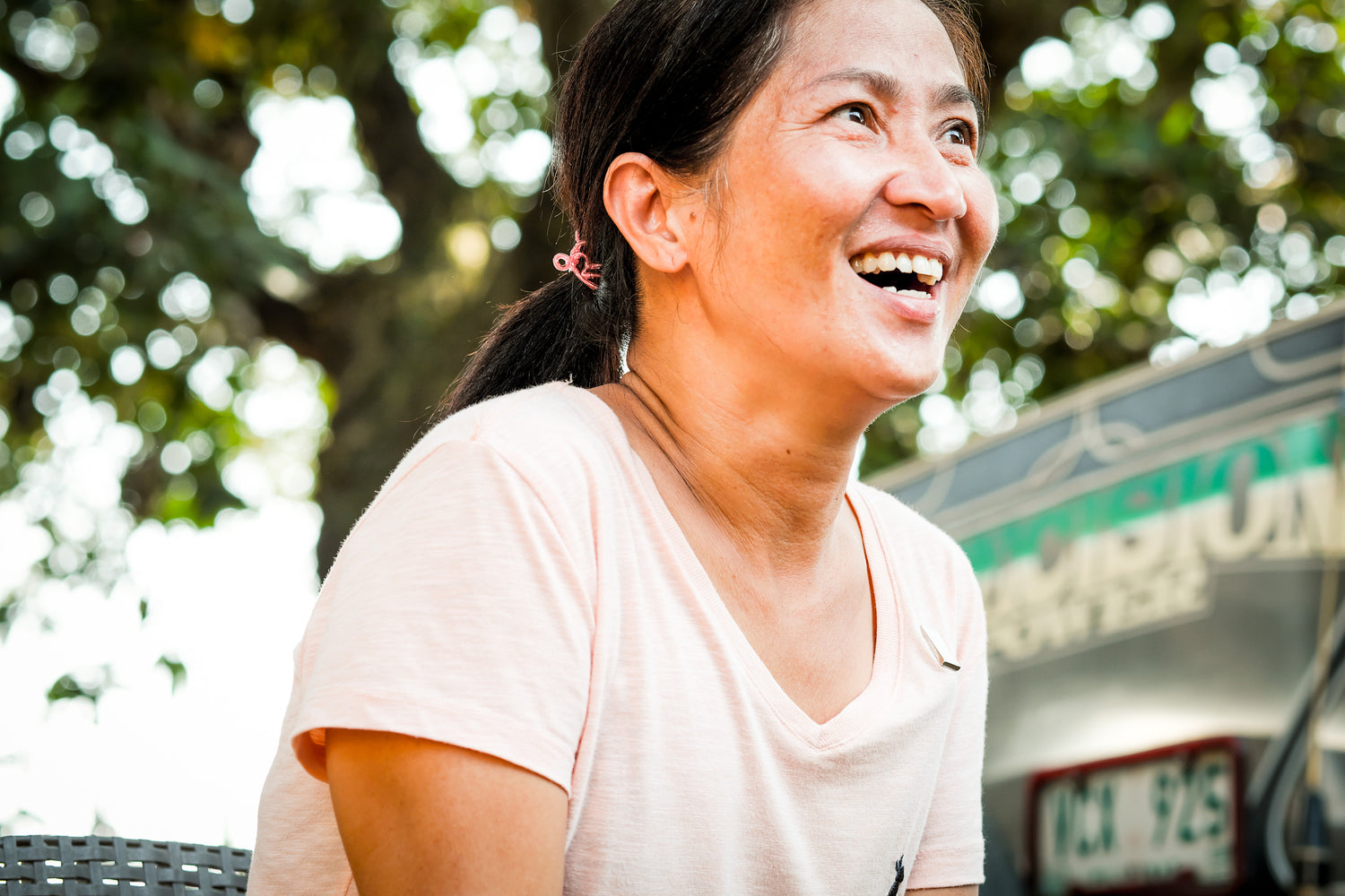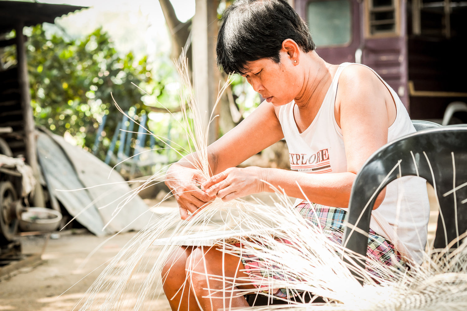 58-year-old Lucia started weaving after learning the craft from one of her neighbors. Since then, she never goes anywhere without her weaving mats - she feels they are an extension of herself, always carrying them around and weaving in her spare time. She recently opened a small grilled tilapia stand where she is able to sell fish and weave at the same time.
