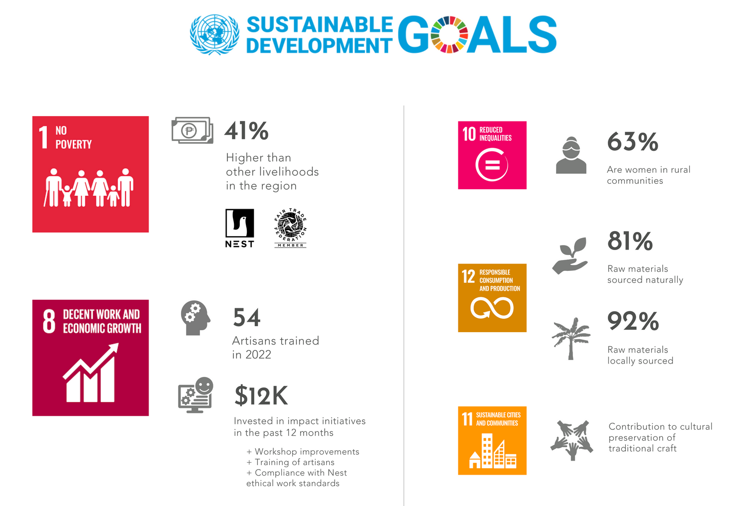 Through our business practices, we aim to contribute towards the UN Sustainable Development Goals of No Poverty, Decent Work & Economic Growth, Reduced Inequalities, and Responsible Consumption and Production.